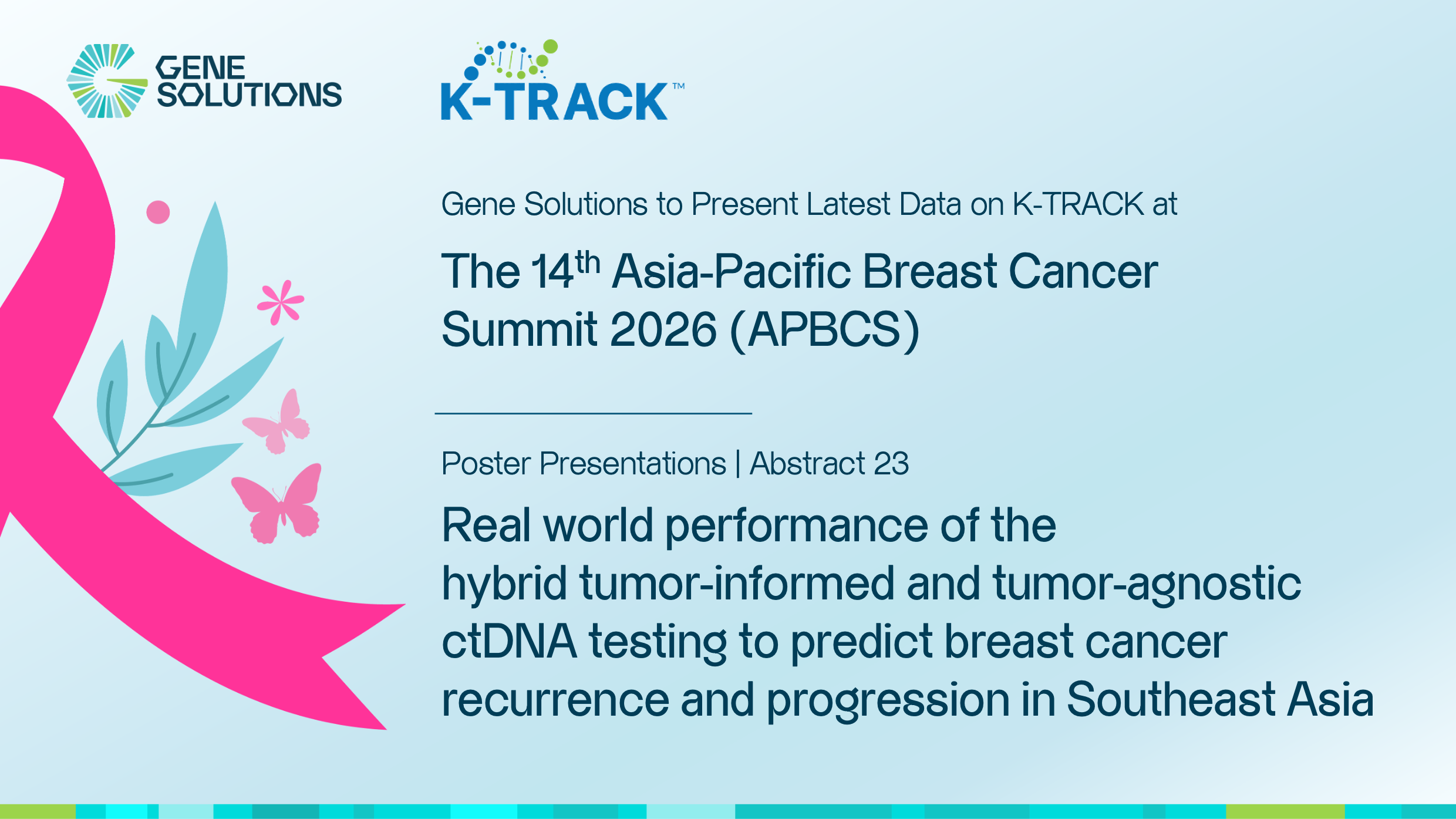 Penang, Malaysia – At the 14th Asia-Pacific Breast Cancer Summit (APBCS) 2026, Gene Solutions presented real-world data on K-TRACK, a novel hybrid circulating tumor DNA (ctDNA) testing approach. This integrative method, combining tumor-informed and tumor-agnostic approach, addresses a critical gap in precision oncology: the challenge of obtaining high-quality tissue specimens in diverse clinical settings.