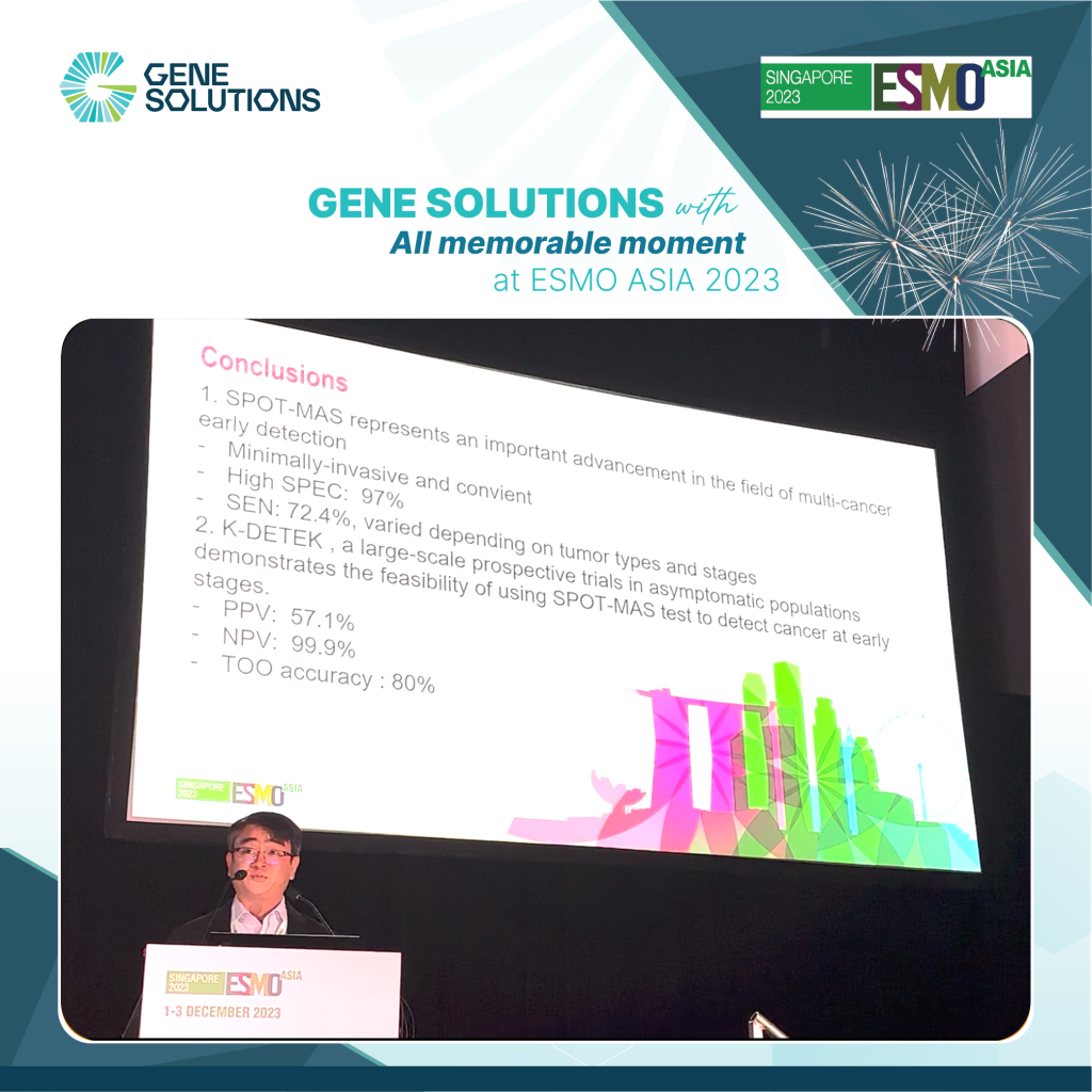 During the event, Gene Solutions presented a research report on SPOT-MAS, which was acknowledged by Tony SK Mok, a renowned scientific speaker from the Chinese University of Hong Kong. The event, ESMO ASIA, served as a platform for experts and doctors to learn about the company’s continuous efforts to bring genetic technology to the forefront of healthcare, providing high-tech health solutions at a reasonable cost.