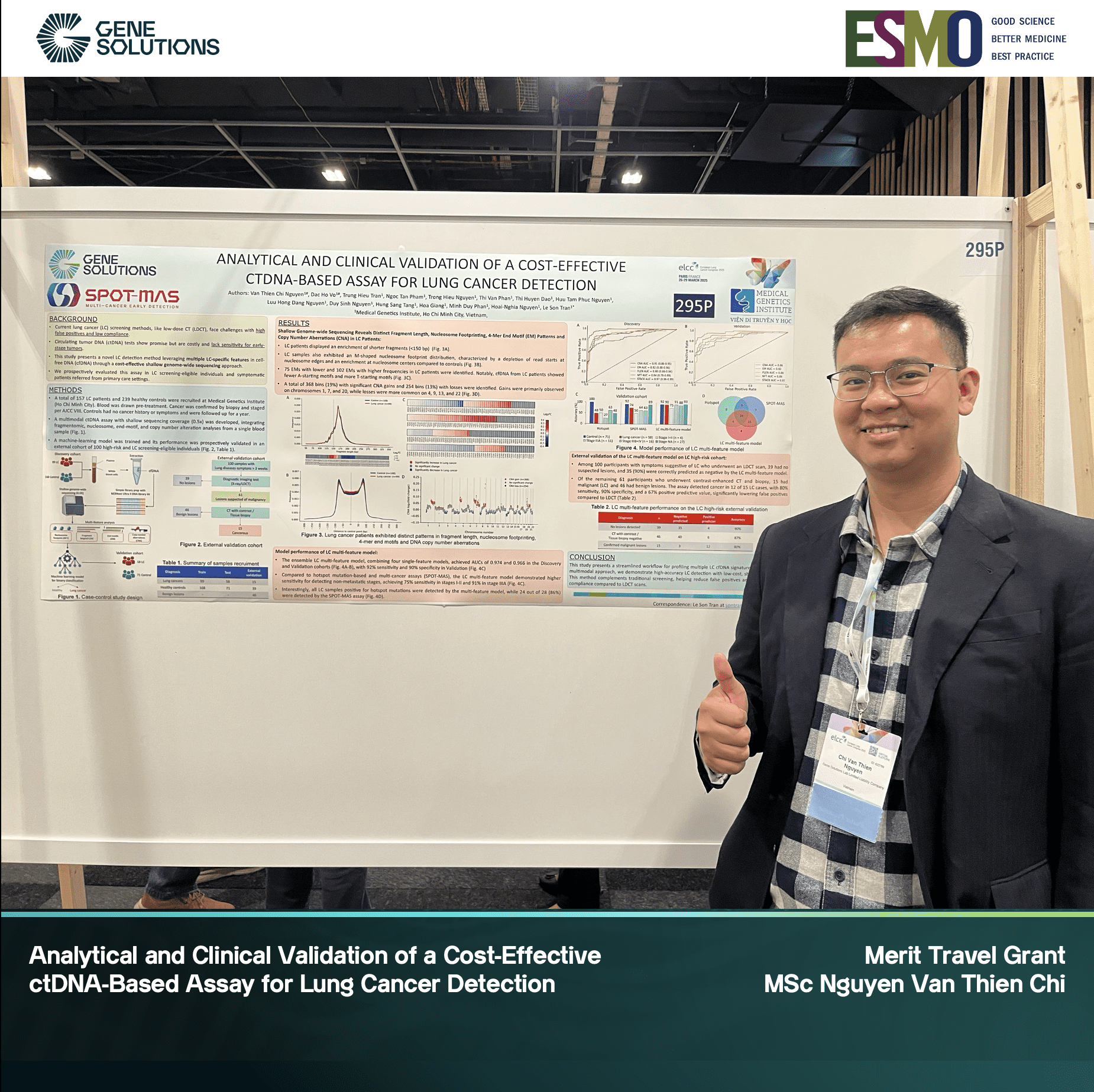We are proud to announce that Nguyen Van Thien Chi (MSc), researcher at Gene Solutions, represented Vietnam at the ELCC 2025, organized by European Society for Medical Oncology (ESMO) and the International Association for the Study of Lung Cancer (IASLC) from March 26–29, 2025, in Paris, France.