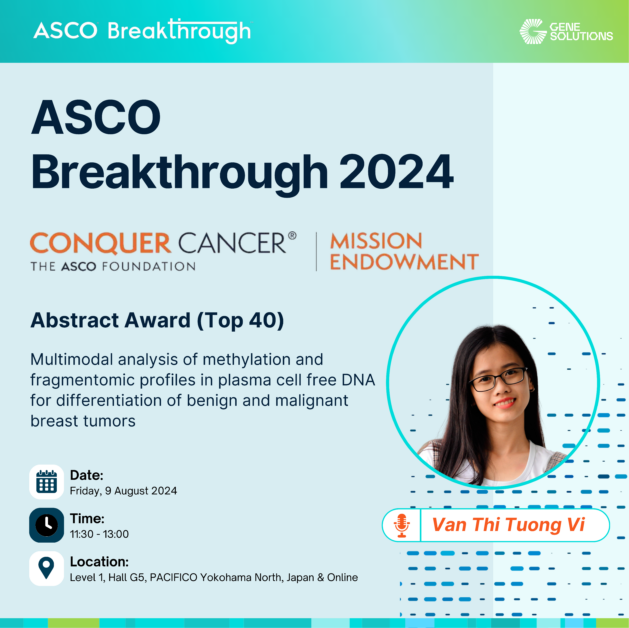 Ho Chi Minh City, 12 July – Gene Solutions’ R&D team is honored to be selected to receive the Conquer Cancer® Merit Award at the 2024 ASCO Breakthrough Meeting. The award was presented to our “K-DETEK” clinical validation study of a multimodal liquid biopsy–based assay, Screening for the Presence of Tumor by Methylation and Size (SPOT-MAS) – Abstract title: Comprehensive validation of a cell-free DNA-based assay for multi-cancer detection: A Vietnamese longitudinal prospective cohort study of 9,024 participants. (Clinical Trial Identifier: NCT05227261)