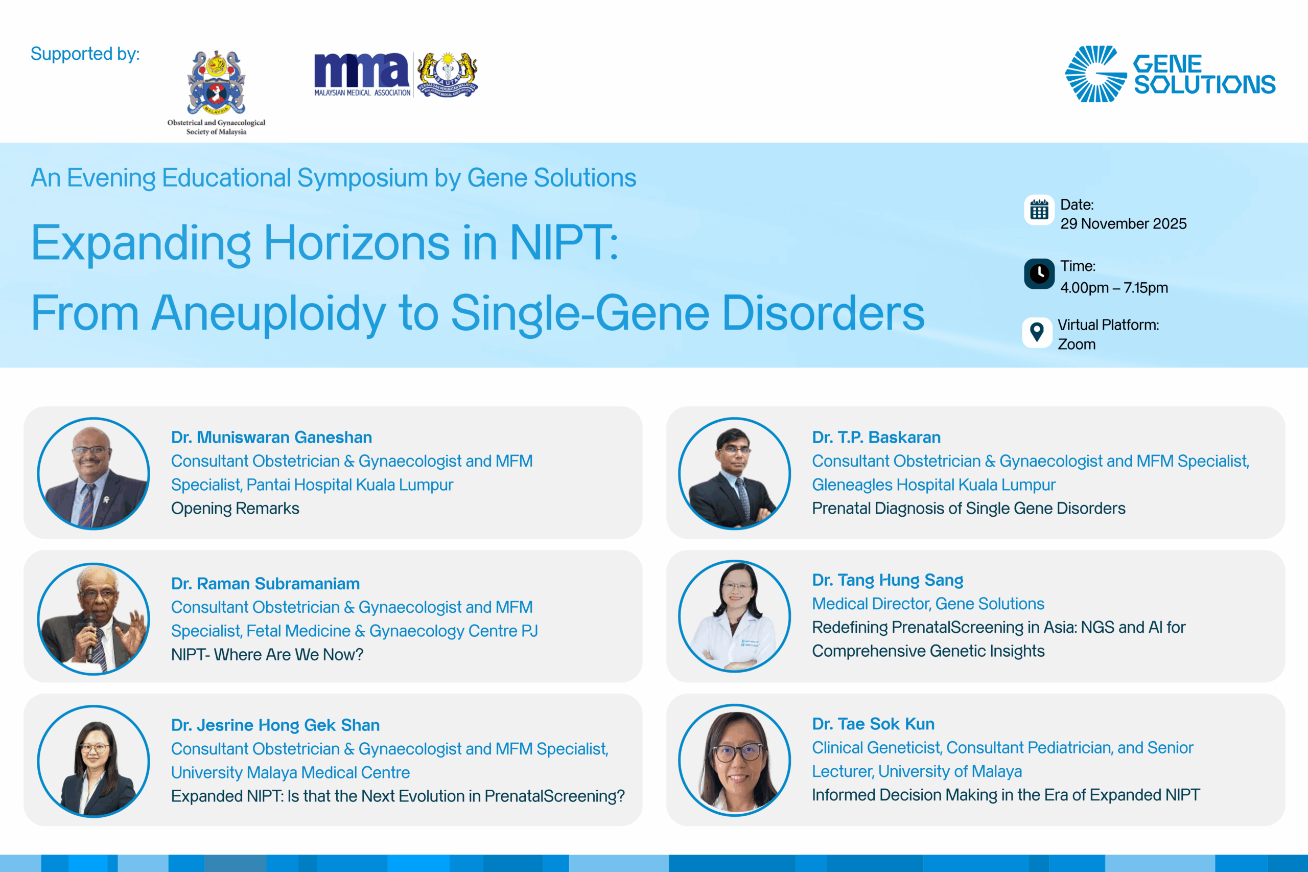 Organised by Gene Solutions, and proudly supported by the Obstetrical and Gynaecological Society of Malaysia (OGSM) and the Malaysian Medical Association (MMA), the session brought together Consultant O&G and MFM specialists, a Clinical Geneticist & Consultant Paediatrician, and the Medical Director from Gene Solutions to share and discuss the latest advances in prenatal screening.