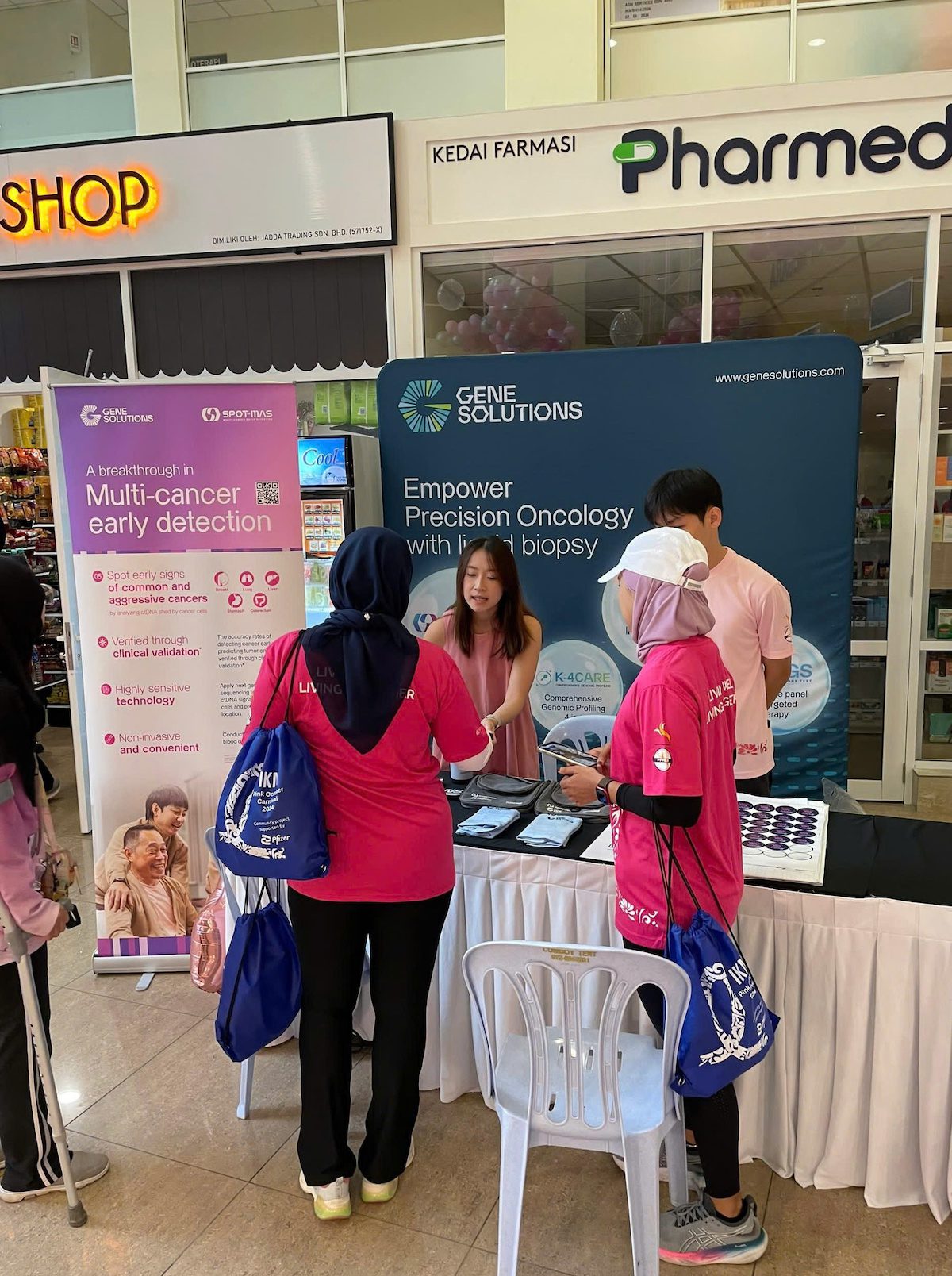 At the Gene Solutions Malaysia booth, our focus was on the vital role of early cancer detection. We focused on sharing the importance of early screening through our Multi-Cancer Early Detection (MCED) test, SPOT-MAS, which uses advanced ctDNA technology to detect early signals of 5 common and aggressive cancers. Our booth also provided an interactive experience for visitors, where they could take part in raising awareness by sharing photos and messages of support on social media, using hashtags like #earlydetection, #MCED, and #GeneSolutionsMalaysia.
